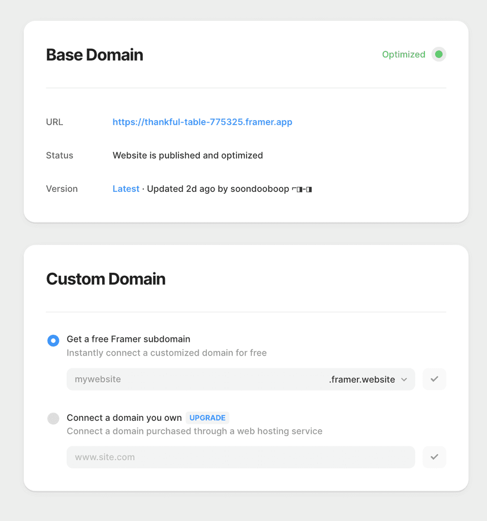 You will have to upgrade your Framer plan in order to add a custom domain. Plans start from $5/month.